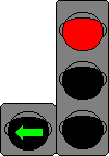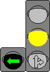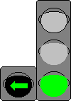 б) зеленый в виде стрелки (стрелок) на черном фоне разрешает движение в указанном направлении (направлениях). Такое же самое значение имеет сигнал в виде зеленой стрелки (стрелок) в дополнительной секции светофора.