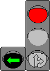 Движение разрешается лишь в случае включения одновременно нижнего сигнала и одного или нескольких верхних, из которых левый разрешает движение по левую сторону, средний - прямо, правый - по правую сторону. Если включены лишь три верхние сигнала - движение запрещено.