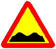 | 1.11 "Холм". Участок дороги с буграми, наплывами или неплавной стыковкой конструкций мостов. Знак также может применяться перед искусственно создаваемыми буграми в местах, где необходимо принудительно ограничить скорость движения транспортных средств (опасные выезды с близлежащих территорий, места с интенсивным движением детей через дорогу и т.п.). |