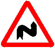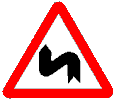 | 1.3.1, 1.3.2 "Несколько поворотов". Участок дороги с двумя и больше расположенными один за одним опасными поворотами: 1.3.1 - с первым поворотом в правую сторону, 1.3.2 - с первым поворотом в левую сторону. |