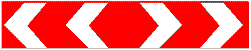 1.4.1, 1.4.2, 1.4.3 "Направление поворота". Знаки (1.4.1 - движение в правую сторону, 1.4.2 - движение в левую сторону) показывают направление поворота дороги, обозначенной знаками 1.1 и 1.2, направление объезда препятствия на дороге, а знак 1.4.1, кроме того, - направление объезда центра перекресток с круговым движением; знак 1.4.3 (движение в правую сторону или в левую сторону) показывает направление движения на Т-подобных перекрестках, разветвлениях дорог или объезда участка дороги, которая ремонтируется.