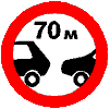 | 3.20 "Движение транспортных средств без соблюдения дистанции ...м запрещено". Запрещается движение транспортных средств с дистанцией между ними меньше указанной на знаке. |