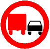 | 3.27 "Обгон грузовым автомобилям запрещен". Запрещается грузовым автомобилям с разрешенной максимальной массой свыше 3,5 т обгонять все транспортные средства (кроме одиночных, которые двигаются со скоростью менее 30 км/ч). Тракторам запрещается обгон всех транспортных средств, кроме одиночных велосипедов, гужевых телег (саней). |