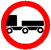 | 3.3 "Движение грузовых автомобилей запрещено". Запрещается движение грузовых автомобилей и составов транспортных средств с разрешенной максимальной массой свыше 3,5 т (если на знаке не указанная масса) или с такой, что превышает указанную на знаке, а также тракторов, самоходных машин и механизмов. |